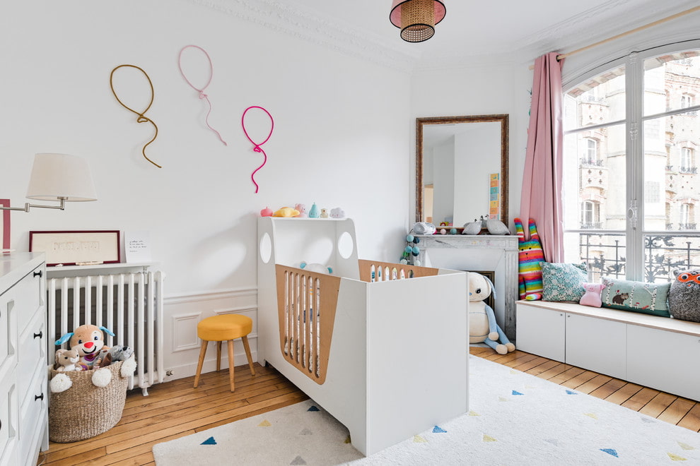 The cradles are placed not only in the nursery, but also in the living room or parent's bedroom. This is mainly due to the lack of extra square meters. The best place to organize a children's corner will be the lightest area in the room or a separate niche, which should have high-quality lighting and good air exchange.