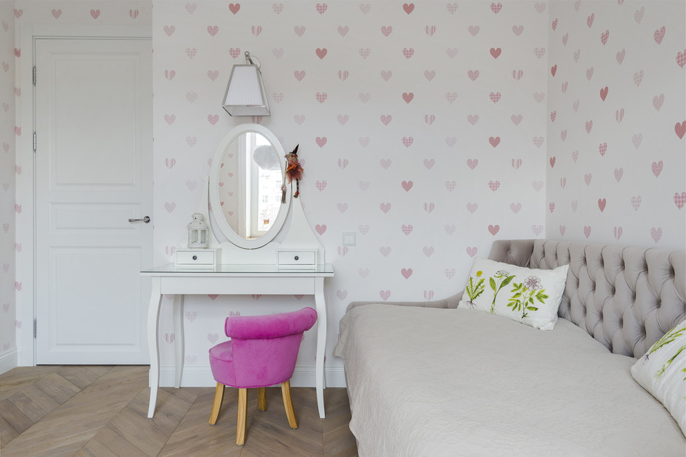 A girly room can be decorated in light colors with cute designs or decorative details like lettering or unicorns.The walls can also be decorated with themed wallpapers that convey the girl's hobbies or companion wallpapers.