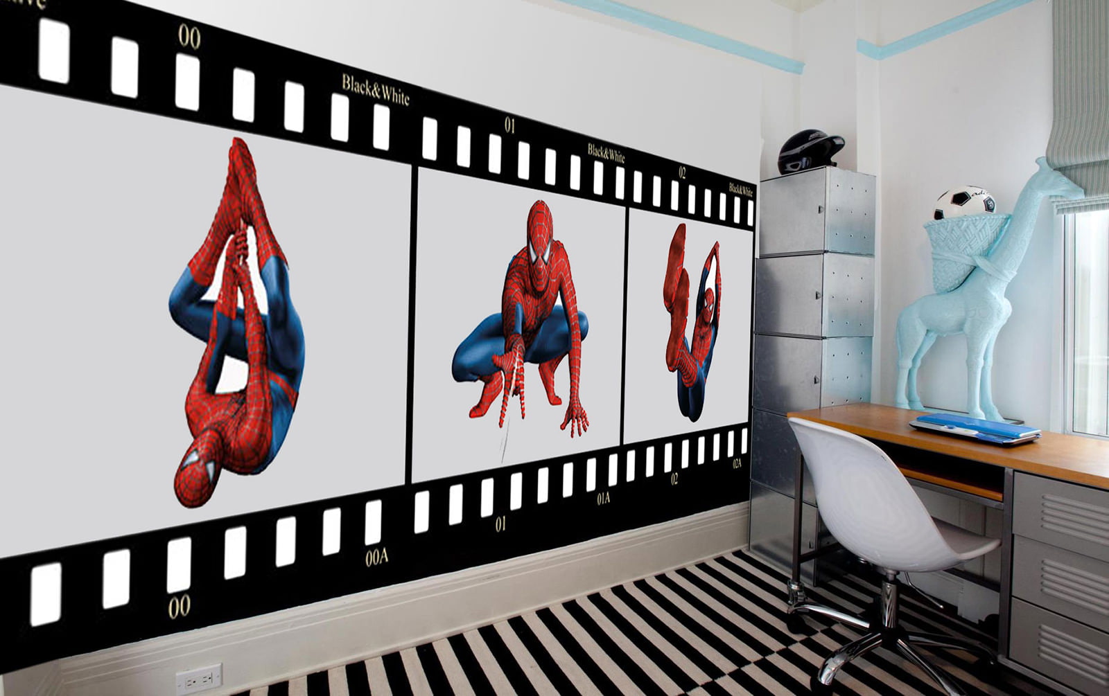 They will effectively decorate the interior of a boy's room of any age, especially if you correctly choose colorful accents in the form of decor items or textiles.