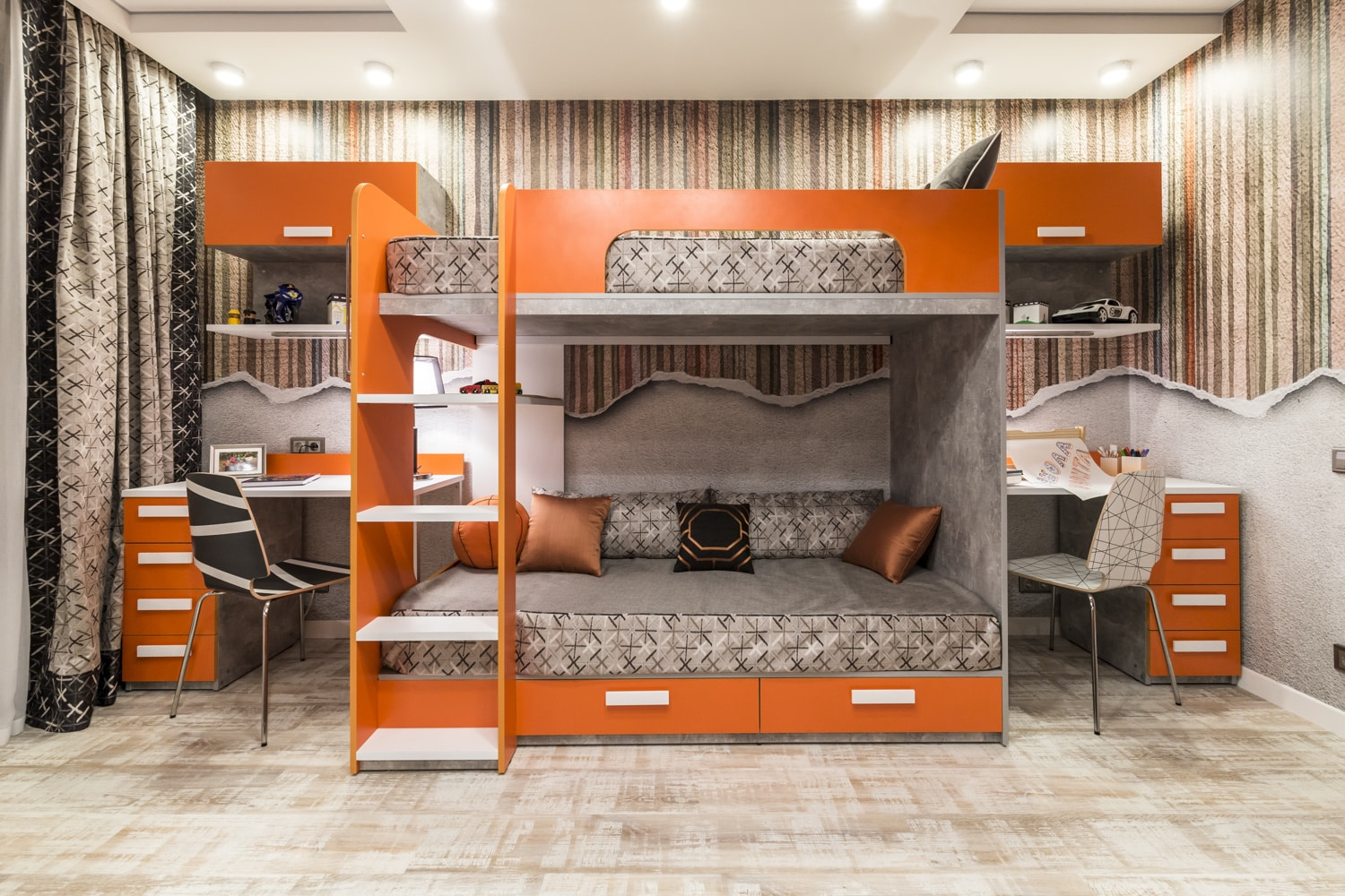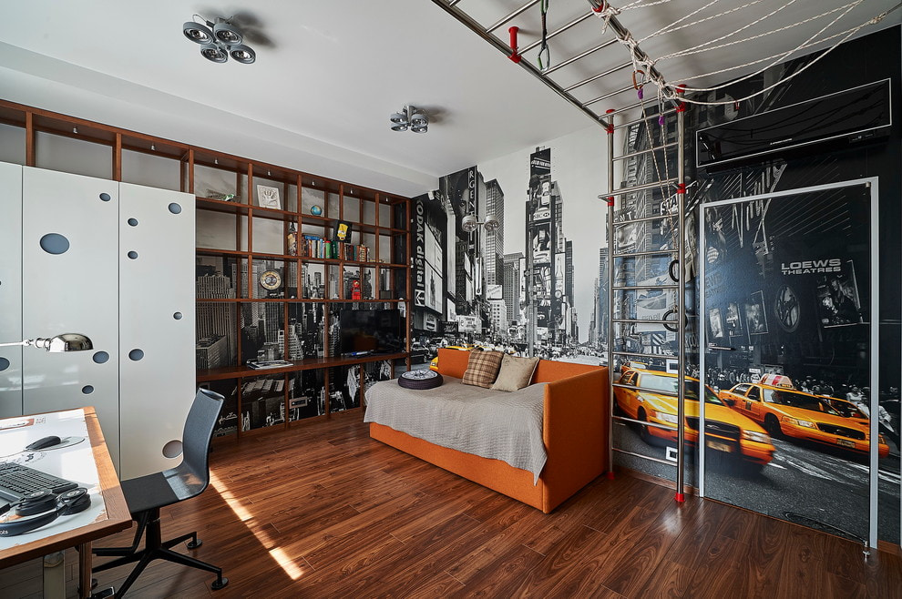 Taking into account the maximalism characteristic of adolescents, including in taste and preferences, it is better to make the room an alliance of incredible colors, textures, shapes and abstractions. Loft, avant-garde, high-tech, Scandinavian and modern styles will help with this.