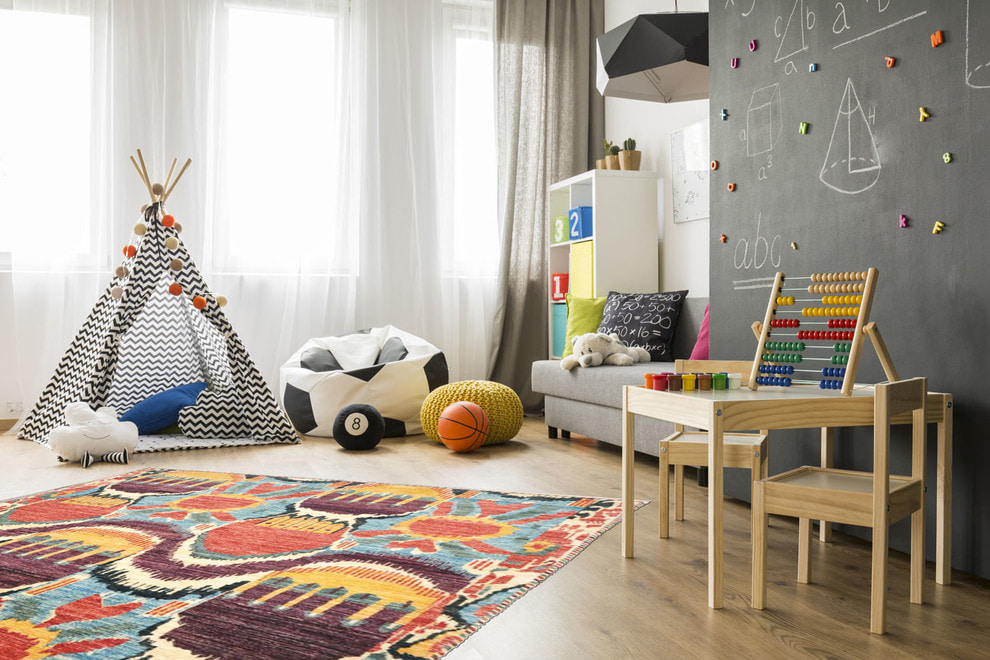 - play area (bright colors with an active pattern, photo wallpaper, wallpaper with a developing context);