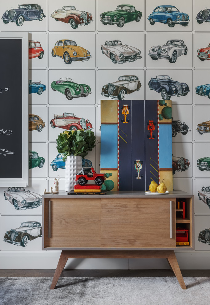 They create a unique interior. For a child's boy materials with images of cars, trains, planes, ships, comic book characters and favorite cartoons are suitable.