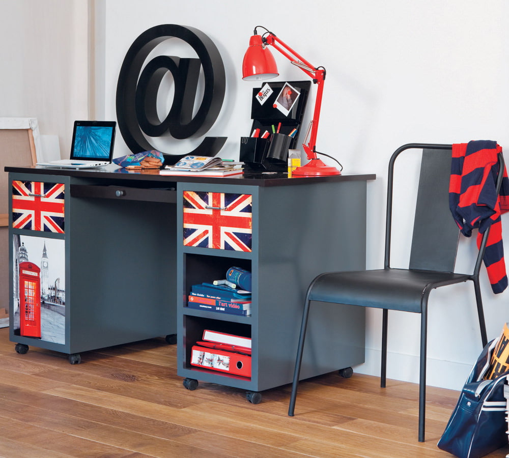 Phone booth nightlights, UK flag toy boxes or stuffed animals are great accessorieschildren's room in the English style.