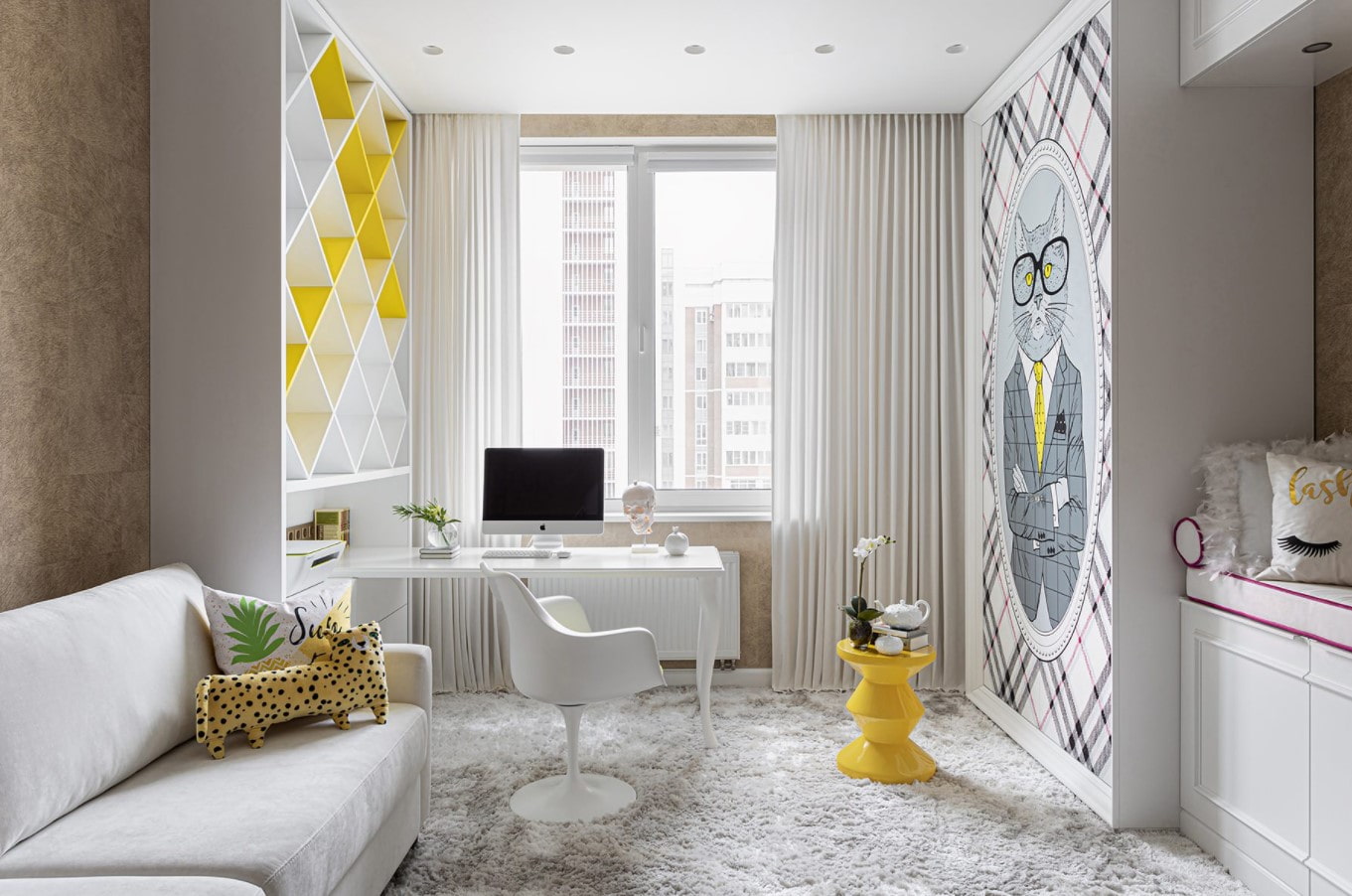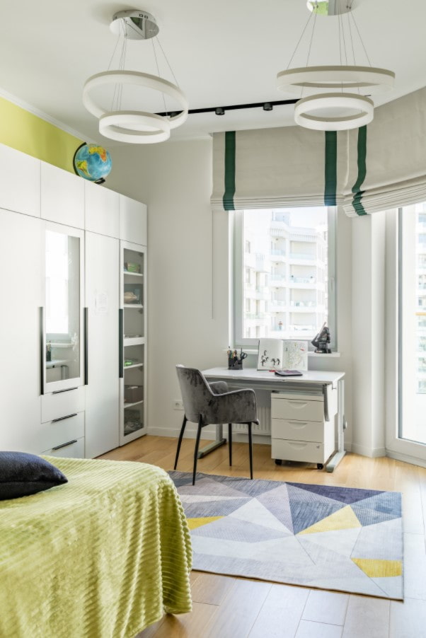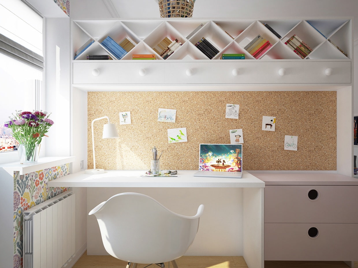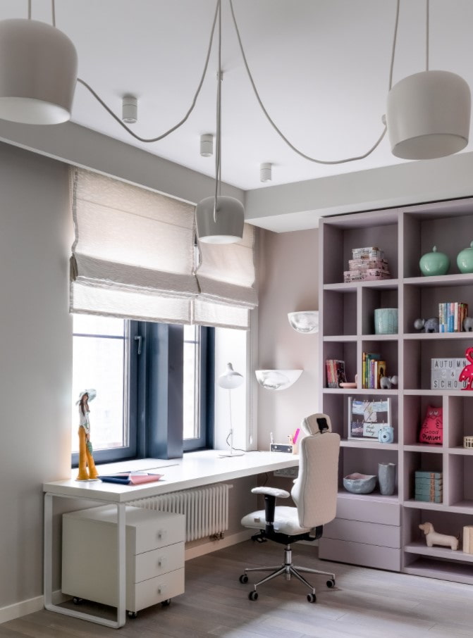- Zoning... Wherever the desk is located, separate it from the play and sleeping area. This is especially important for primary school students, the correct division of space will not allow them to be distracted from their studies.