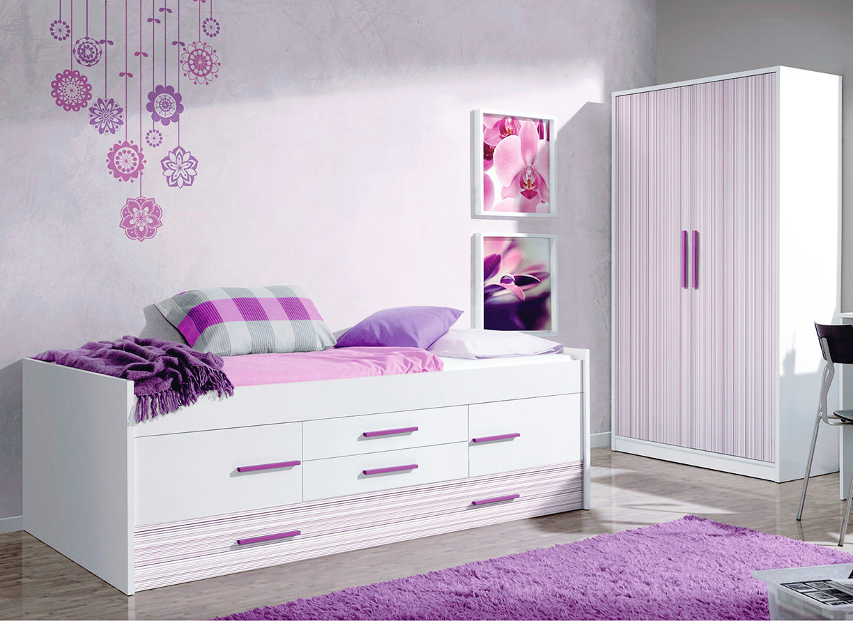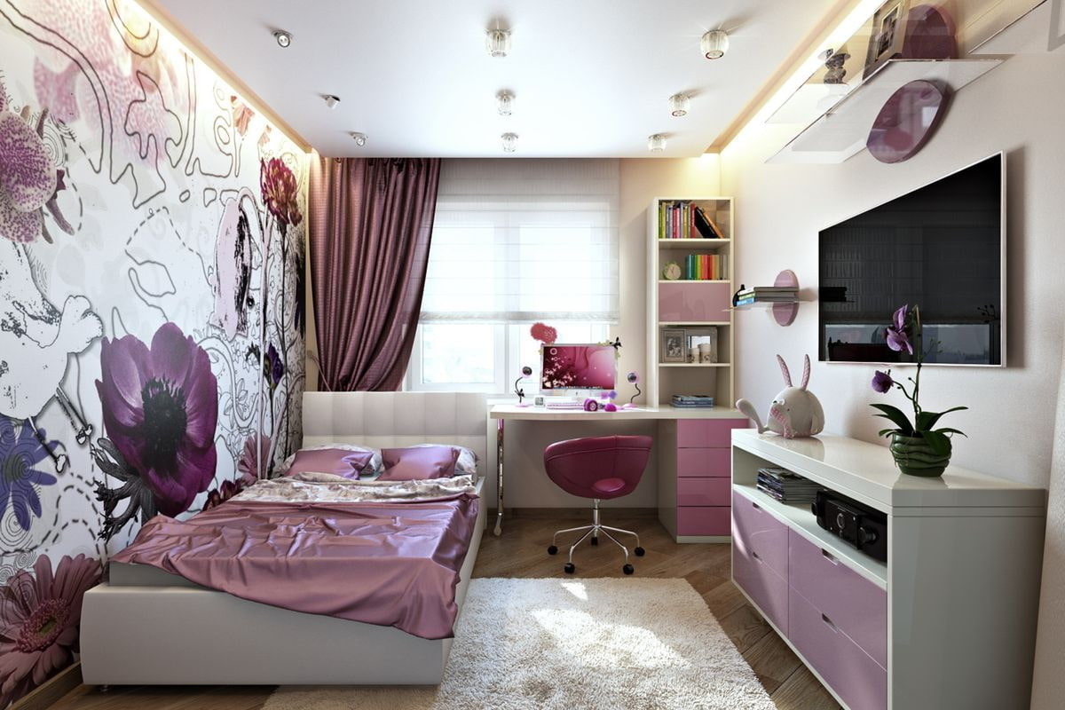 Sometimes just a couple of bright decorative elements are enough to revive the interior of a children's room. For example, hang curtains in deep purple, even black and violet, and match a similarly bright carpet, bedspreads and pillows. However, then it is better to make the walls, floor and furniture light: beige, gray, white.