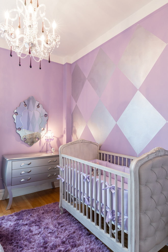 Lilac and purple baby room is suitable for newborn babies and teenagers, children of different genders. The main thing is a harmonious combination of shades. Do not overwhelm small bedrooms with an excessive amount of decor or dark and bright: purple, fuchsia, plum.