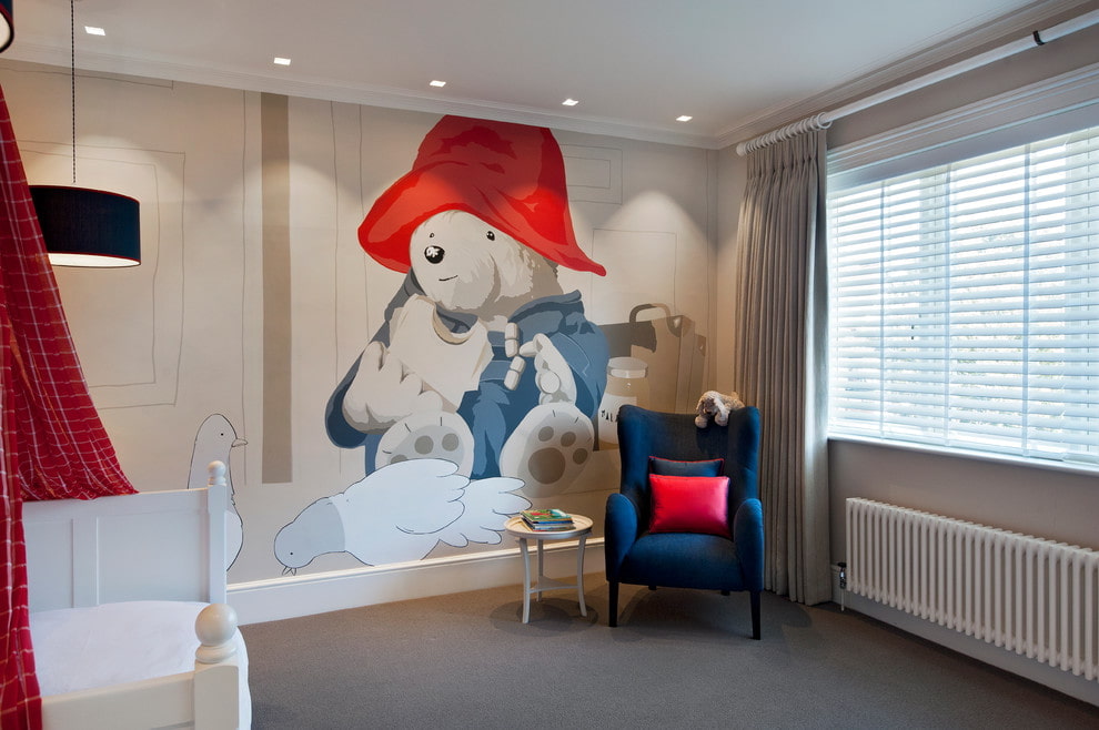 Simple bright or complex artistic drawings, single elements or small compositions located throughout the space or only partially will add a zest to the overall stylistic solution of the nursery.