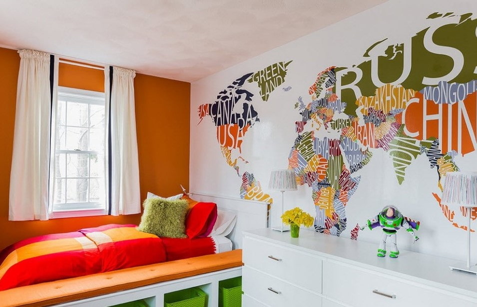Bright posters, portraits, cool stickers, hand-made crafts or any other decoration plots against the background of neutral colors on the walls will help develop the imagination.