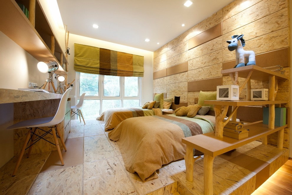 This coating is environmentally friendly, natural, perfectly retains heat, but at the same time has a fairly high price. Wooden lining or various panels form a comfortable microclimate and can be used around the entire perimeter of the room or in fragments. This type of decoration is rarely used for children's rooms in city apartments.