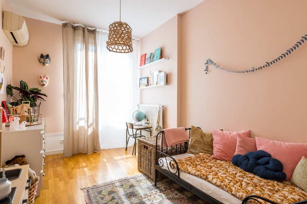 Apply pink, lilac, light yellow or pale blue tones in combination with other shades. If you correctly combine the color balance and add a few bright accents to the space, for example, cute pictures, drawings or stickers, you can get a very harmonious and homely design.