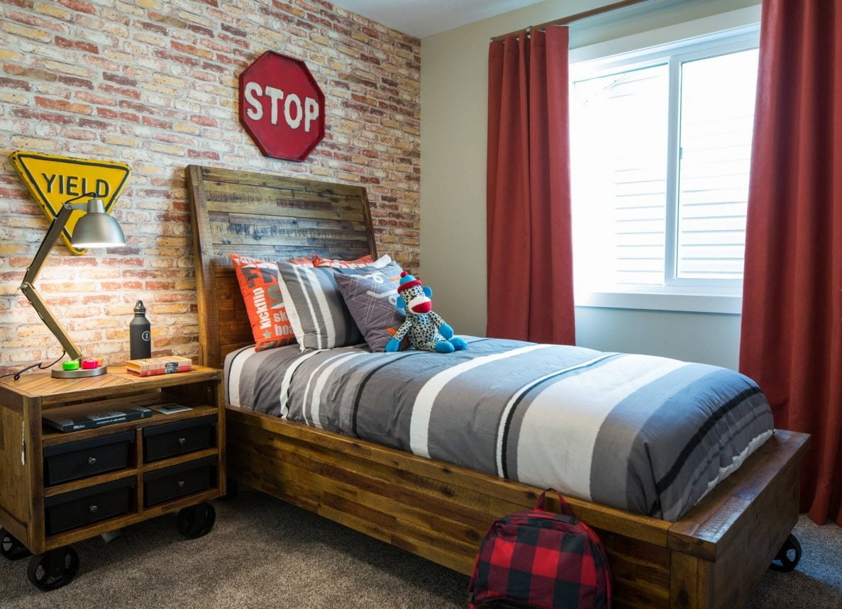 Brick decoration is preferred in the room for older children. Brick in light colors will create an unusual accent plane, which, in combination with a spectacular decor, will personalize the room.