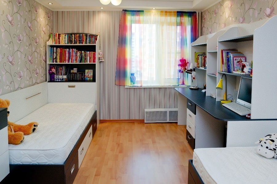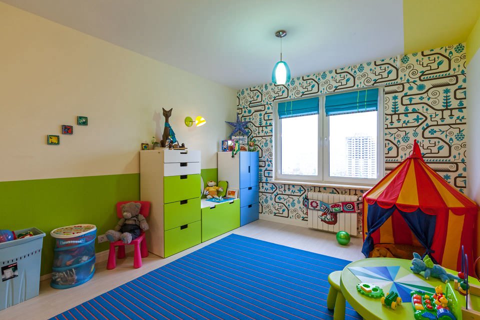 In cases where there are two or even more children of different genders in a family, and it is impossible to allocate a separate room for each, the question is asked - how to arrange a common nursery? If the children are of a close age, the problem is easier to solve. While they are small, everyone only needs a separate place to sleep, but the area for games and various activities can be common. At this time, wallpaper can be used to zone the room into separate zones according to the functional principle: a zone for sleeping and a zone for games.
