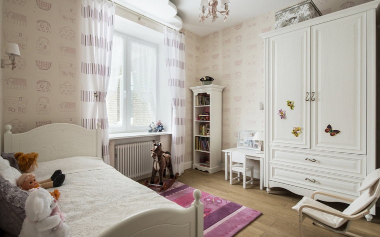 Traditionally, light shades of the warm part of the spectrum are chosen for girls' rooms - red, pink, warm yellow, delicate green, peach, lavender and mint tones.