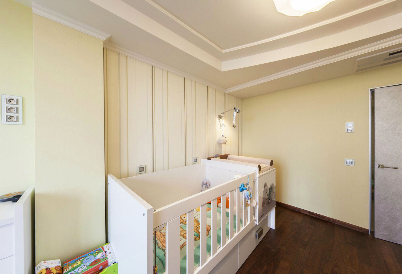 Photo 3. Neutral beige wallpaper in the children's room allows you to decorate the wall with a variety of stickers or drawings of the child's choice.