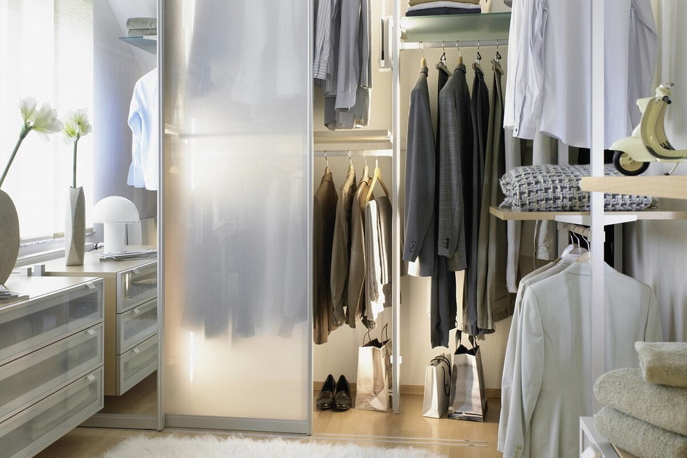 Such a dressing room is often set up in small apartments. A certain place is allocated for the utility room and it is separated by movable, stationary partitions or sliding compartment doors.