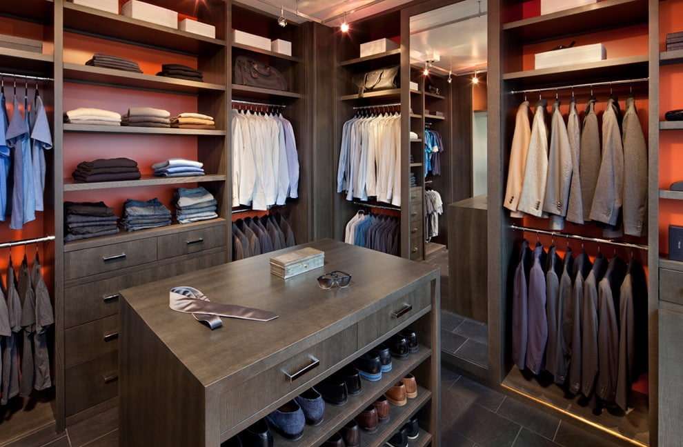A fashionable interior trend is to set the island in the middle of the wardrobe.Due to the island module, it turns out not only to emphasize the aesthetics of the surrounding space, but also to make the room more functional. The central part of the room is equipped with whole complexes that allow you to store things, relax and carry out cosmetic procedures.