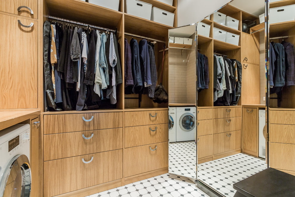 This wardrobe usually contains a section for suits. A changing room is most often set up next to an office or living room.