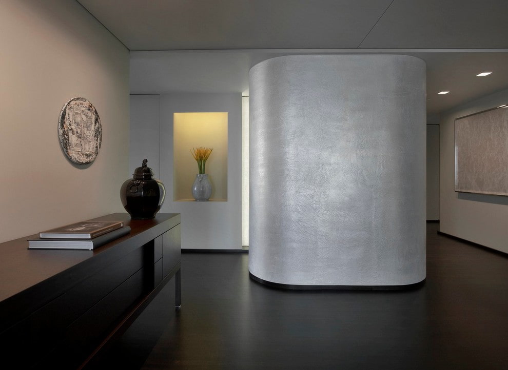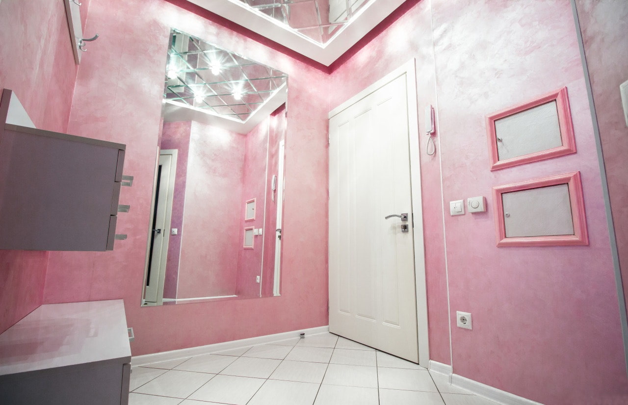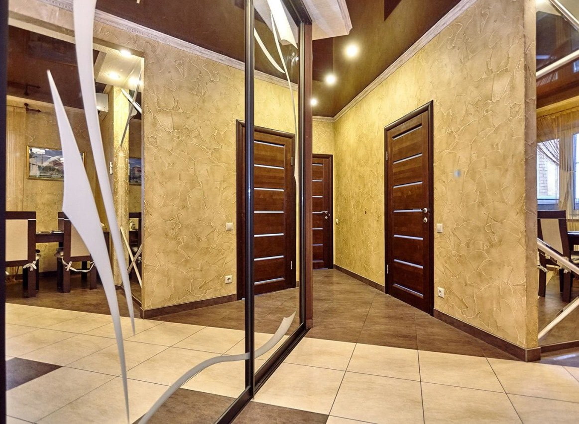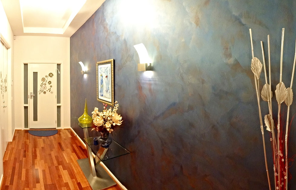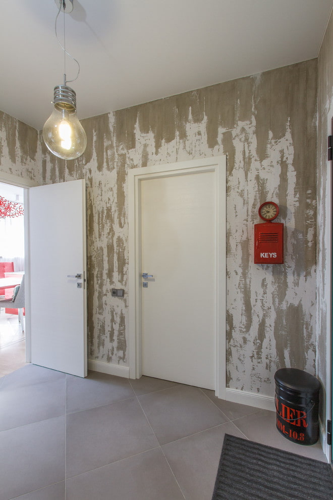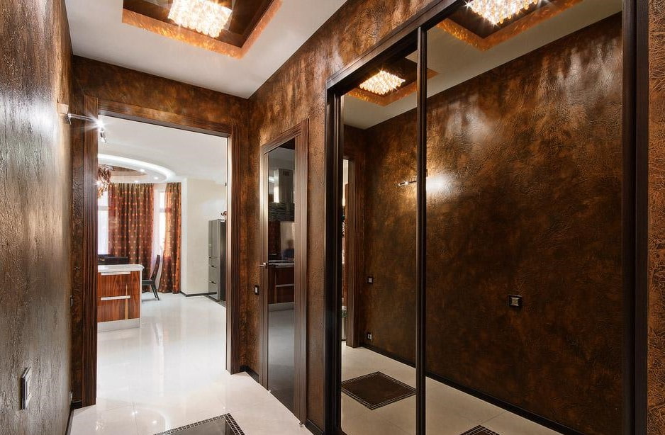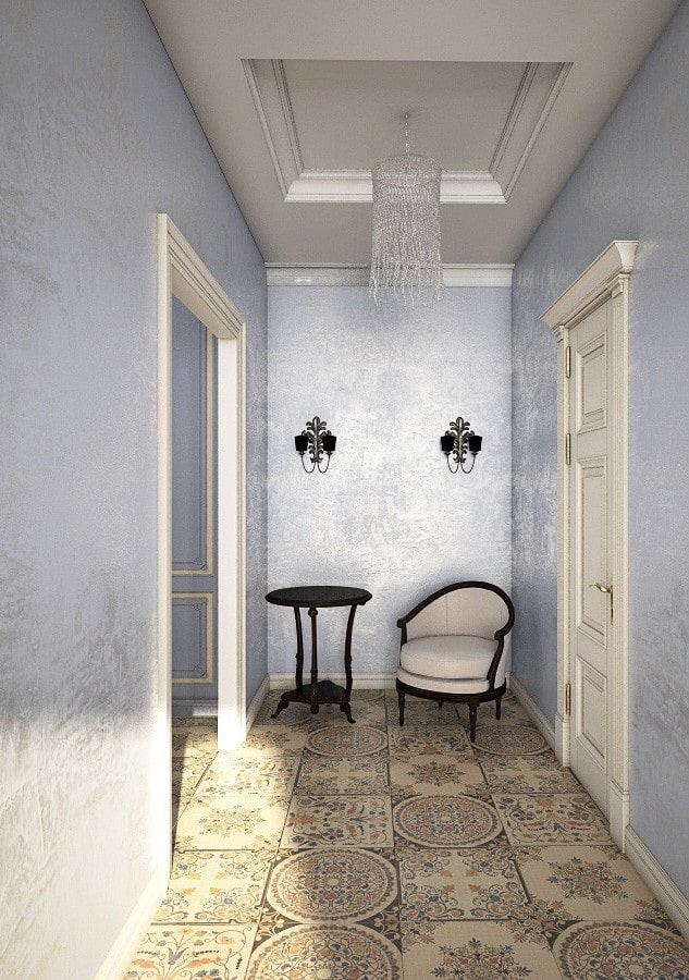 The plaster has an unusual texture and can imitate a wide variety of surfaces, which makes the design of the corridor much more interesting and original. This decorative finish gives the whole environment a special sophistication and elegance.