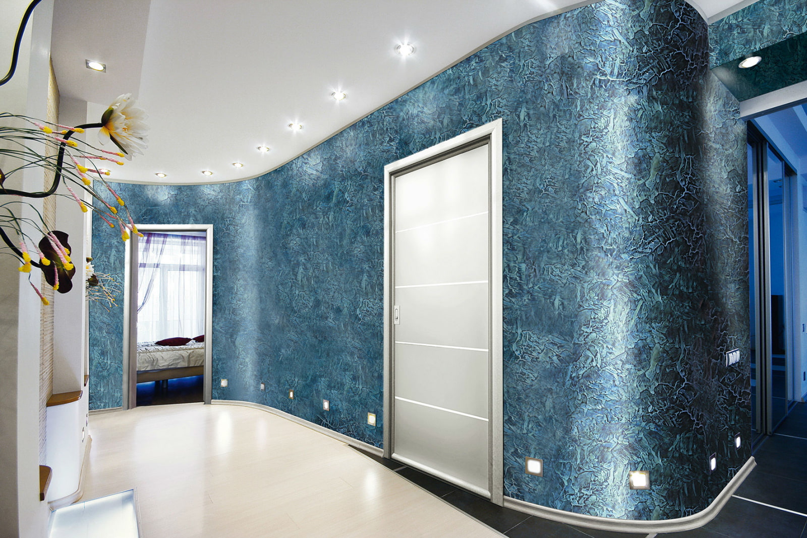 This finish is perfect for decorating hallways, as it is applied in a thin layer, dries quickly enough and is odorless. Due to quartz elements and marble chips in the composition, structural plaster forms a non-uniform granular surface.