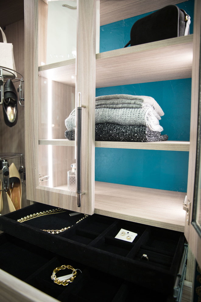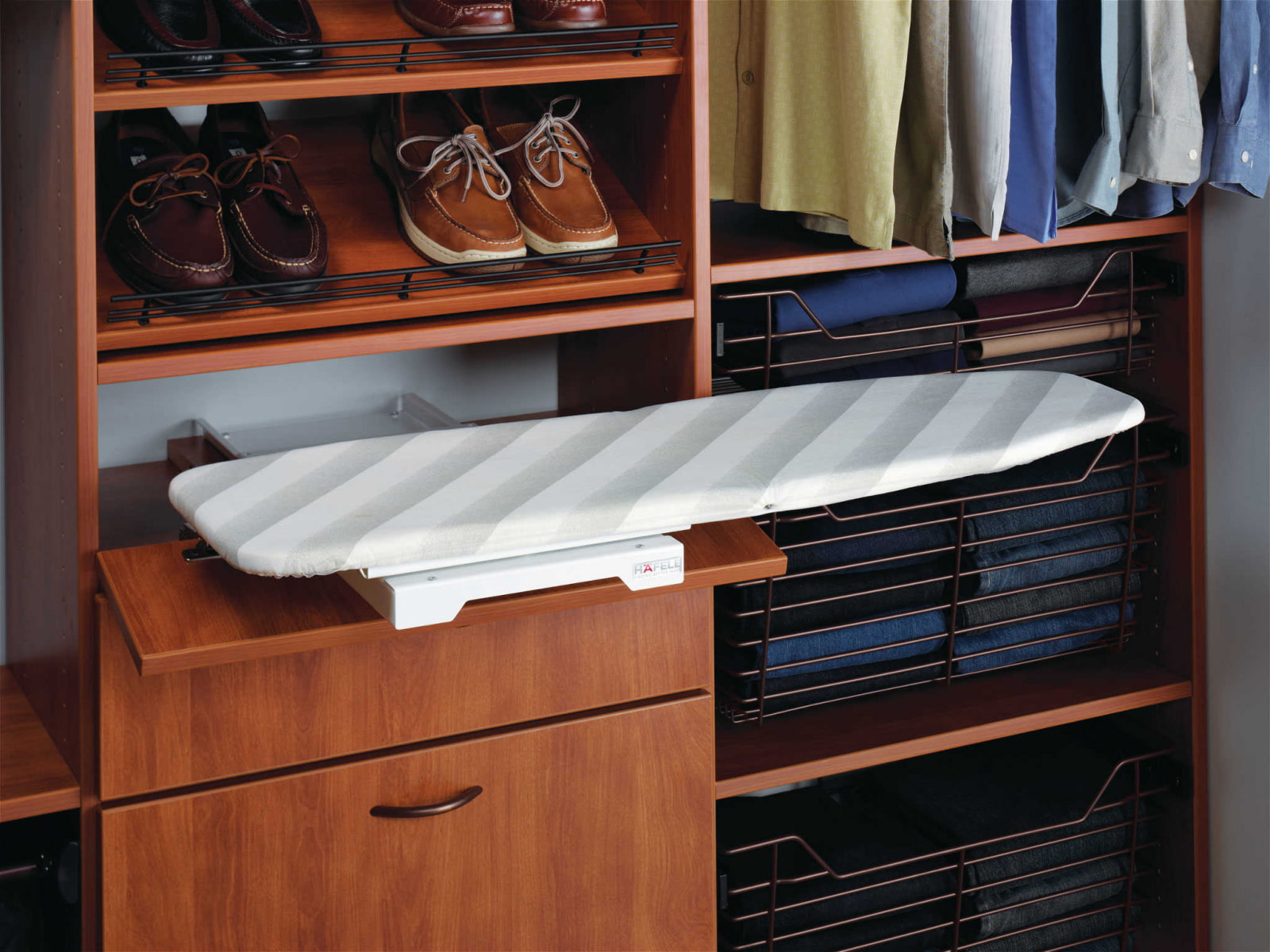 Another useful device is the installation of an ironing board in the dressing room. This will require lighting, an outlet, and a place for an iron.