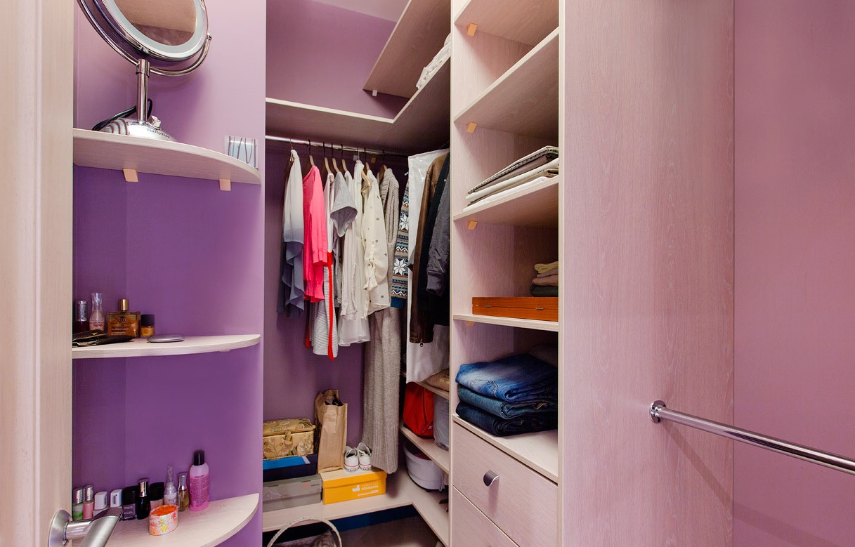 Thus, you can turn an ordinary pantry into a dressing room, even in a Khrushchev - the main thing is to take into account all the features and carefully think over the storage system.