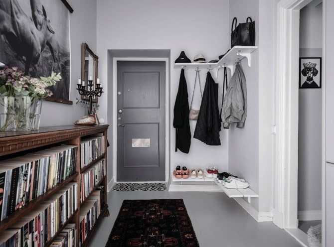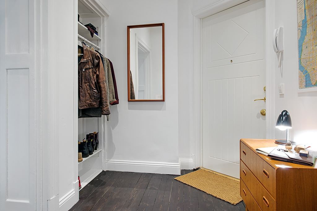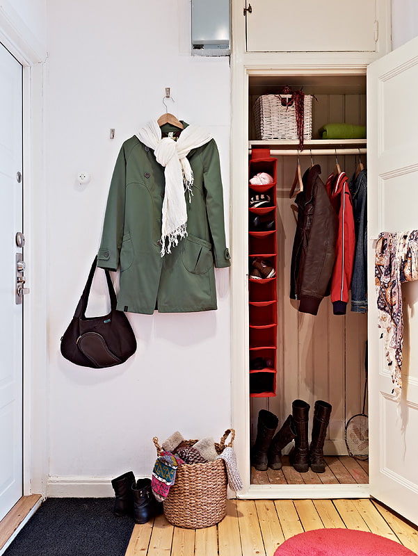 Organization of a wardrobe near the front door has significant advantages. This option assumes a more comfortable dressing, and makes it unnecessary to carry clothes throughout the apartment.