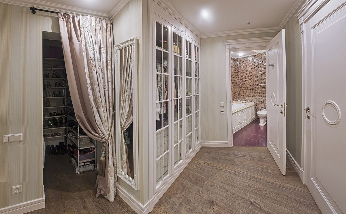 In the photo there is a corridor with a wardrobe built into the pantry.