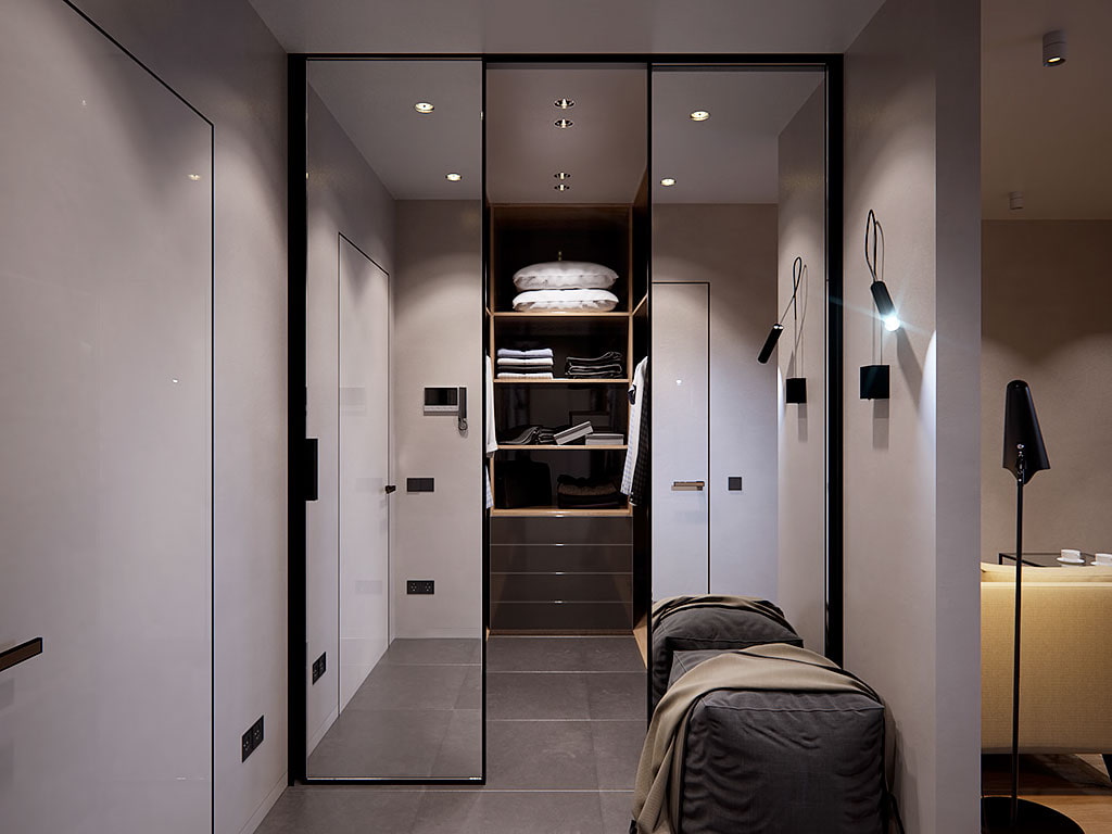 The photo shows a closed dressing room with sliding doors in the interior of the hallway.