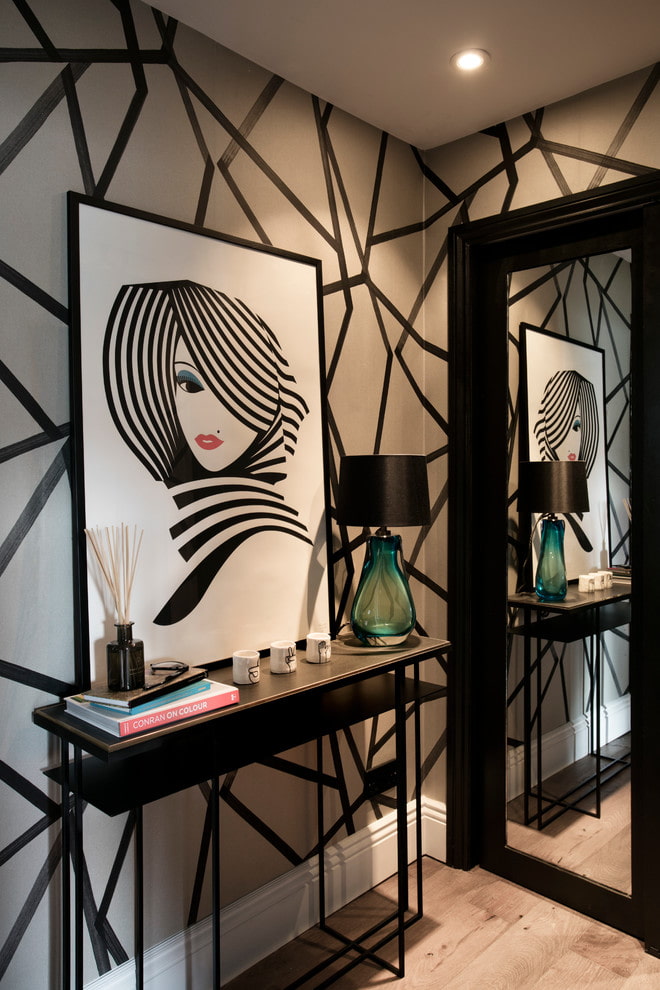 The accent can be stylish wallpaper with a variegated print, floor tiles with a pattern, a luxurious ceiling chandelier. And even a wall painted in a contrasting color will impress more than a cramped entrance area.