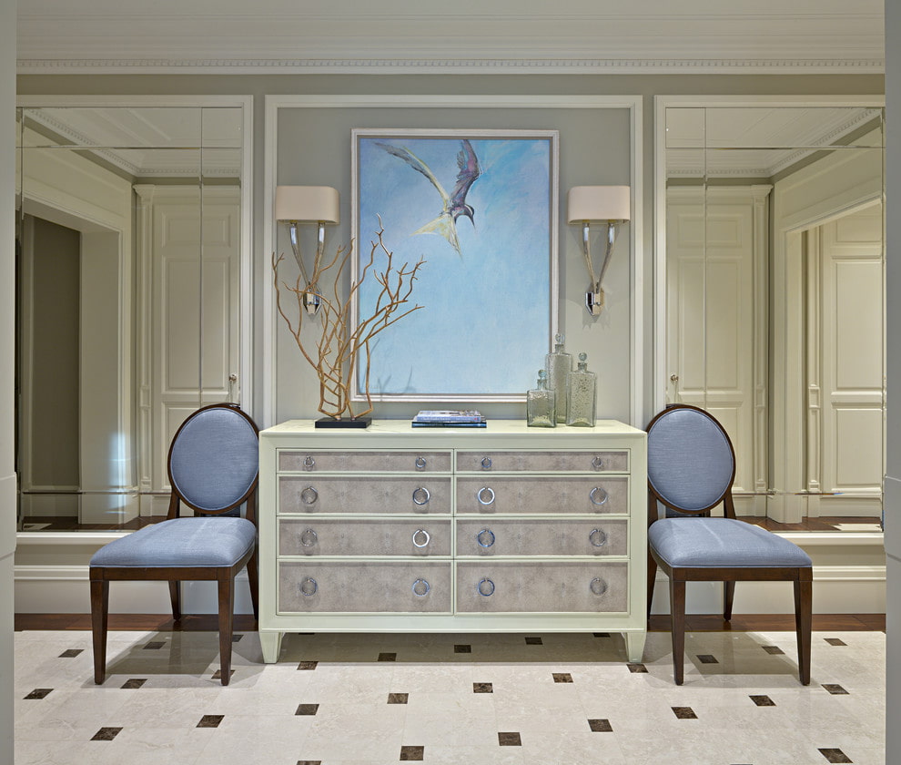 - Opposite the mirror. If there is a mirror in the corridor, it is undesirable to place more than one picture in front of it, since the effect of multiple reflection will lead to a visual decrease in the area.