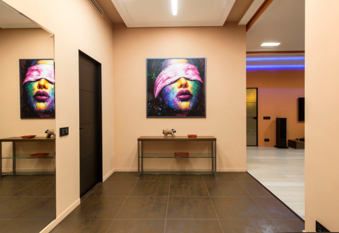 Interior paintings can completely change the visual perception of the entire corridor.