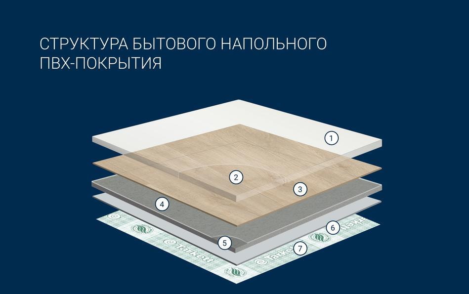 It is also useful to know about what linoleum consists of. Synthetic PVC material has the following structure: