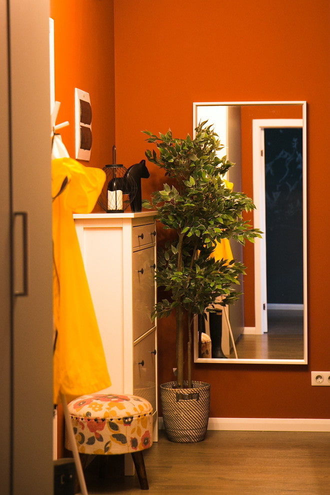 If there is enough space in the hall, the interior can be supplemented with a bench, stool and even an upholstered armchair - this will increase the feeling of comfort.
