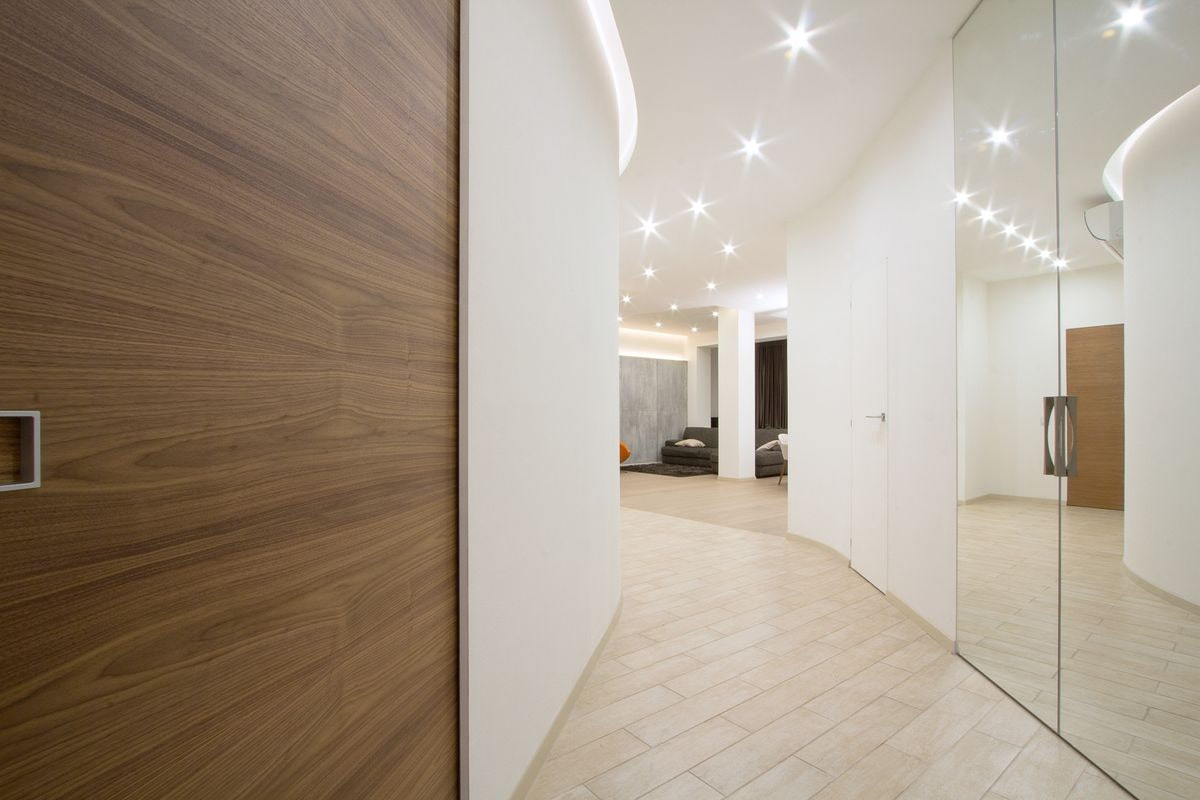 Loft lovers prefer imitation wood-like flooring (often aged) in the corridor. Minimalism is characterized by tiles with a laconic pattern - white, gray, with the texture of concrete. Floor products imitating natural stone emphasize the sophistication of the classics.