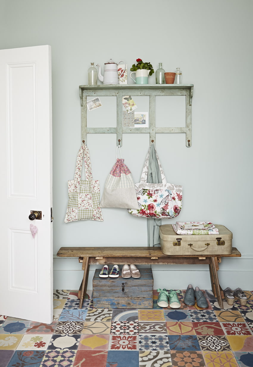 Patchwork-style products are becoming more and more popular: these are patterned tiles that resemble a patchwork quilt. The multi-colored floor in the corridor will perfectly fit into the Provence or Scandi style and will revive the interior.