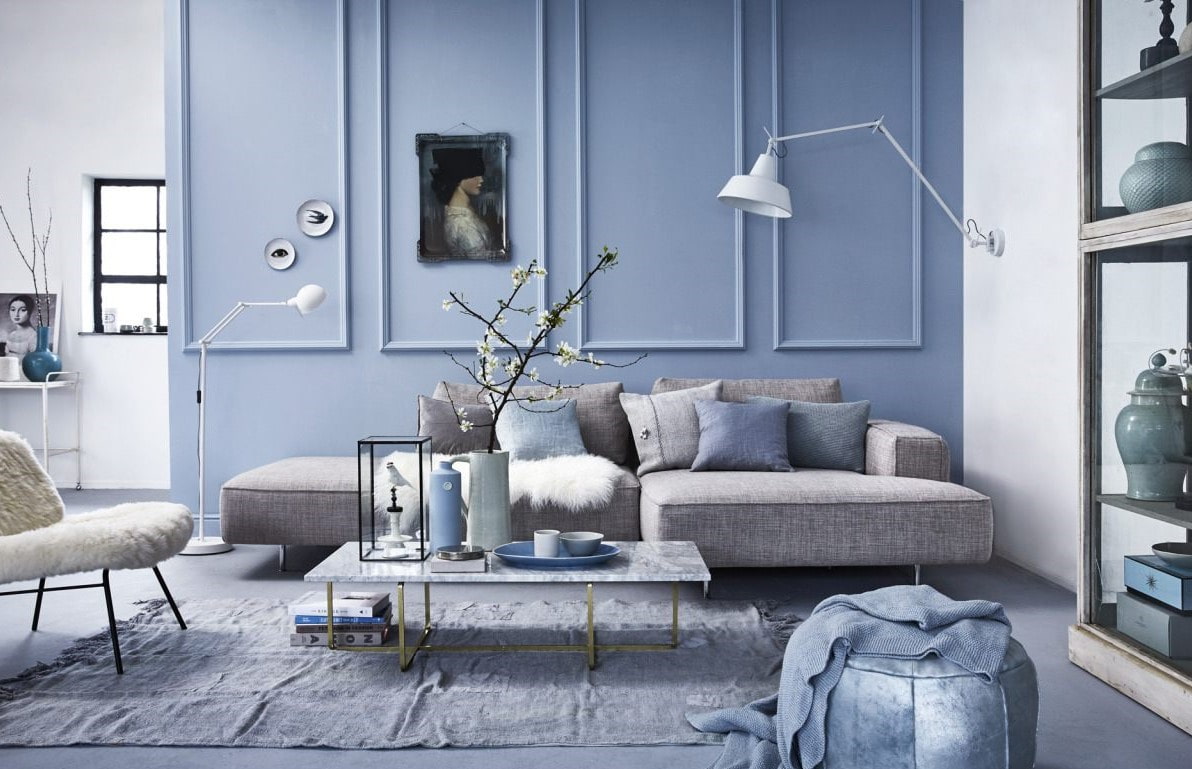 Living room in gray-blue tones