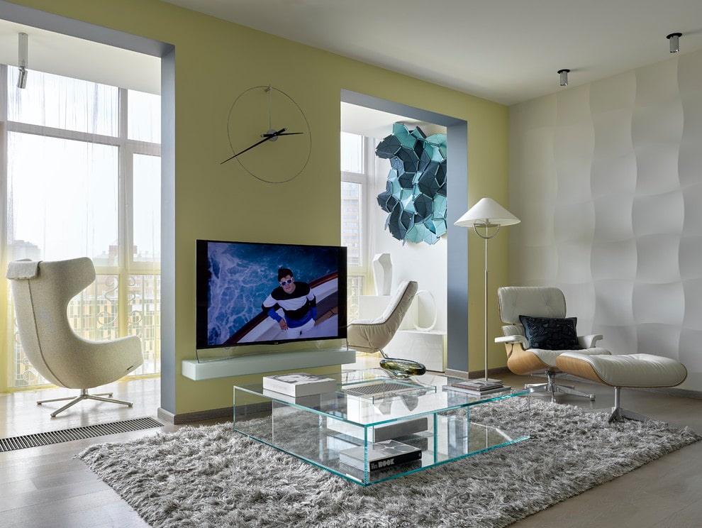 They have a rather unusual and non-trivial look, which, if properly designed, can completely change the surrounding space of the living room.
