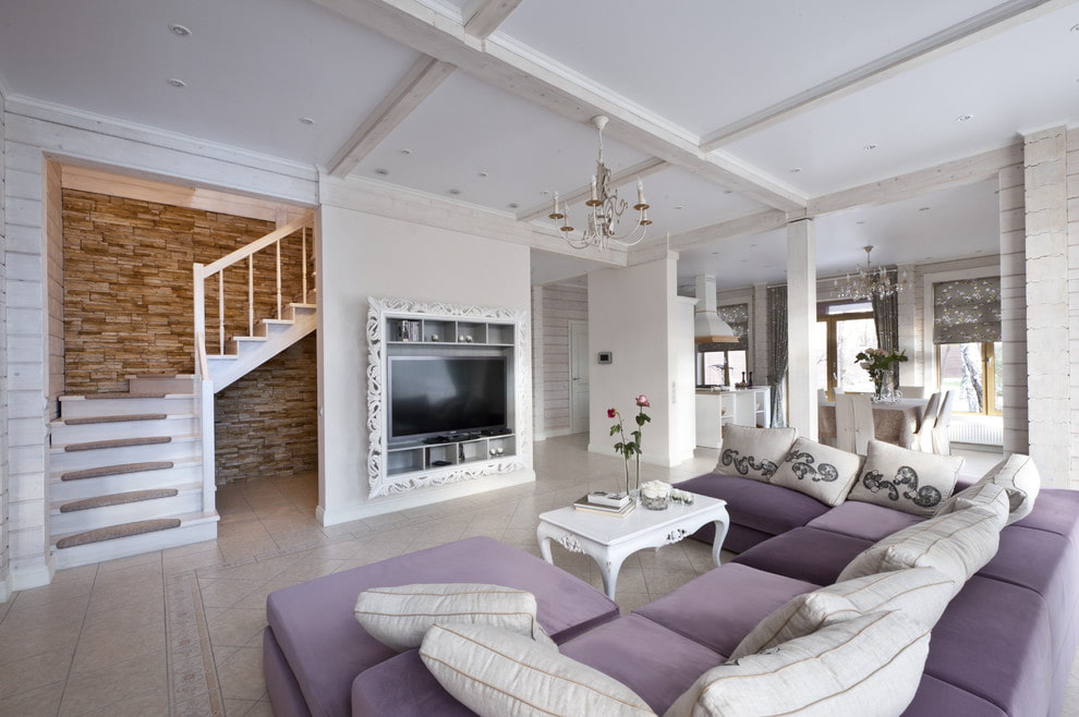 They can be either regular or distorted ellipse. The oval design in the interior of the living room always looks solid and impressive.
