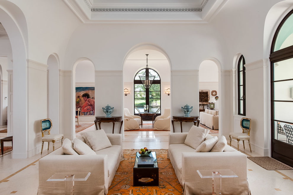 This style involves the use of simple and slightly strict forms, minimal decor and all shades of white. An excellent solution can be large and wide arched openings, painted in light colors.