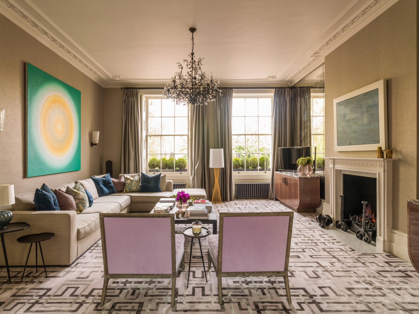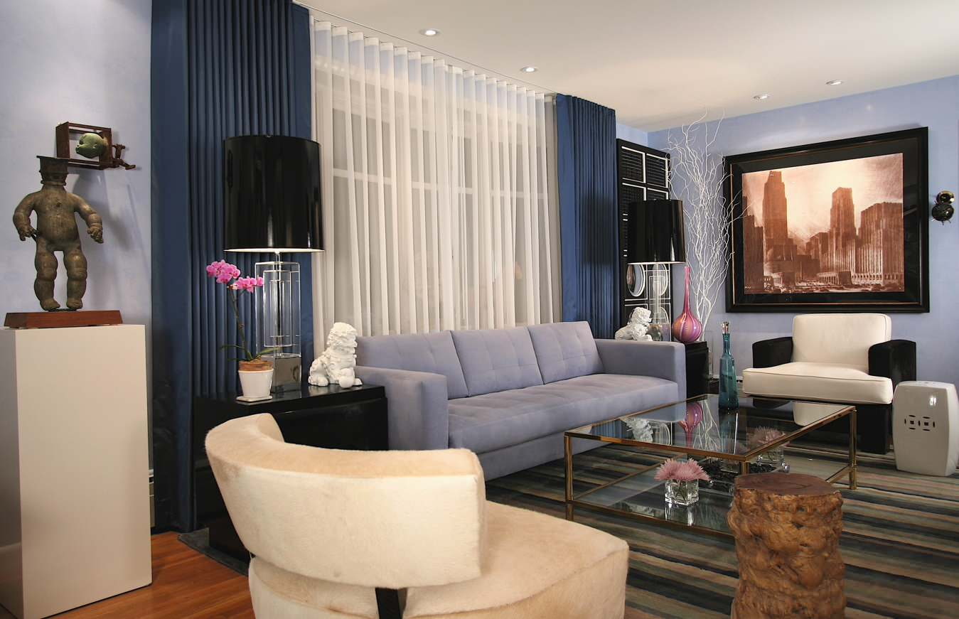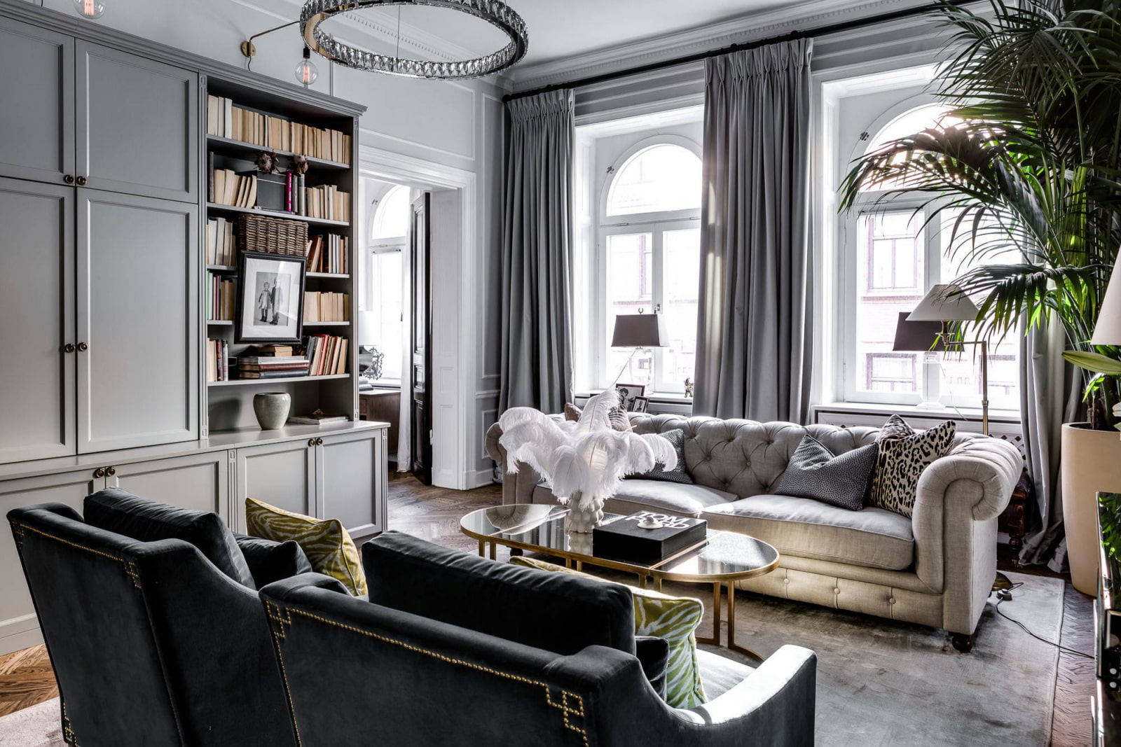 The photo shows a modern art deco living room with a refined and cozy atmosphere, thought out to the smallest detail.