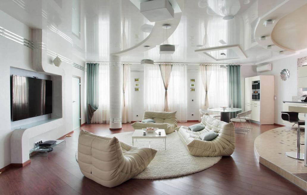 White wallpaper in the living room interior: possible combinations
