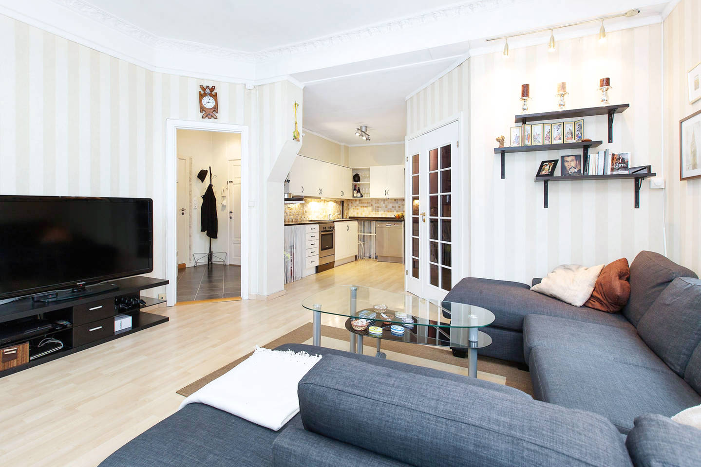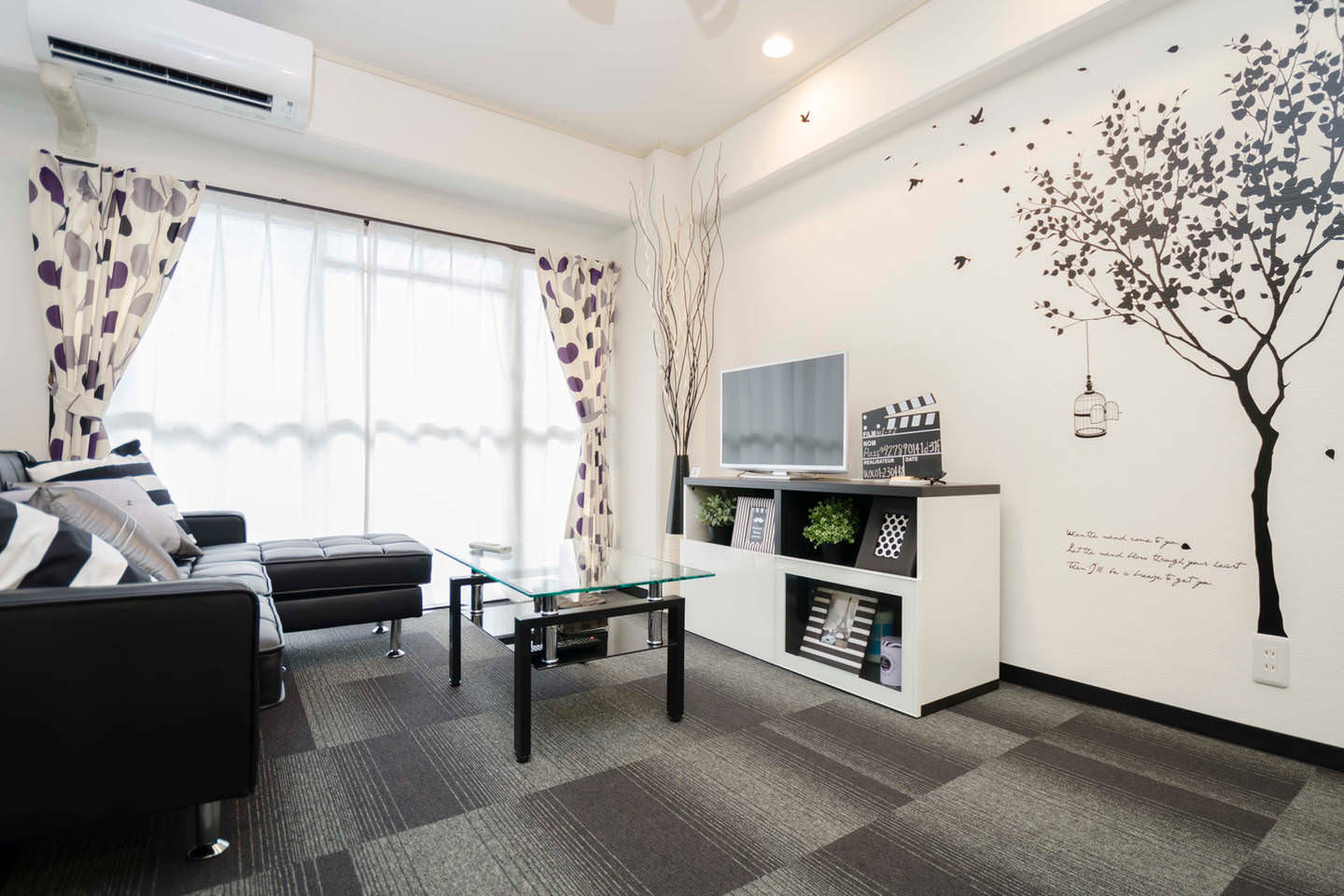 Black and white wallpaper in the living room