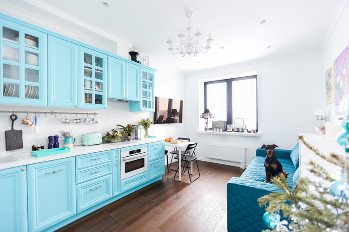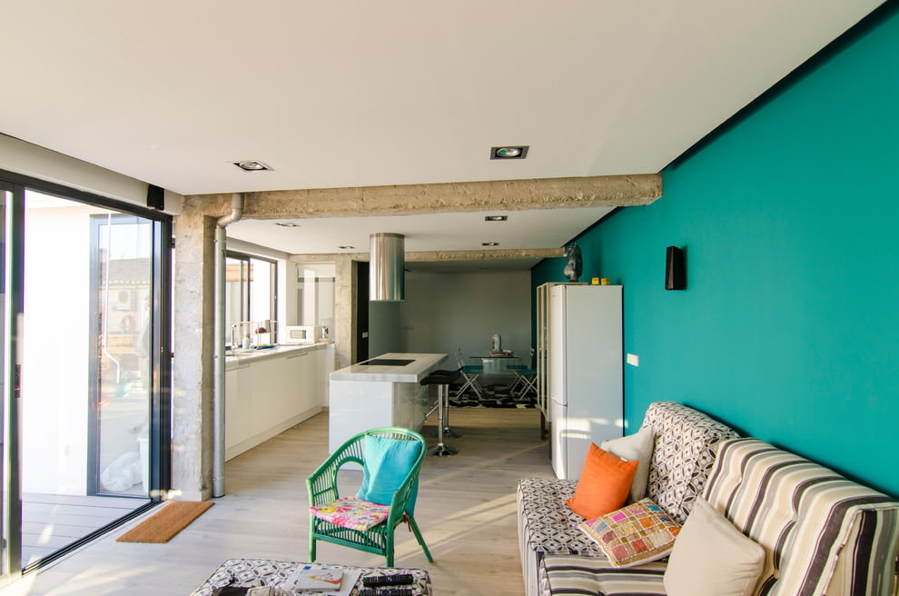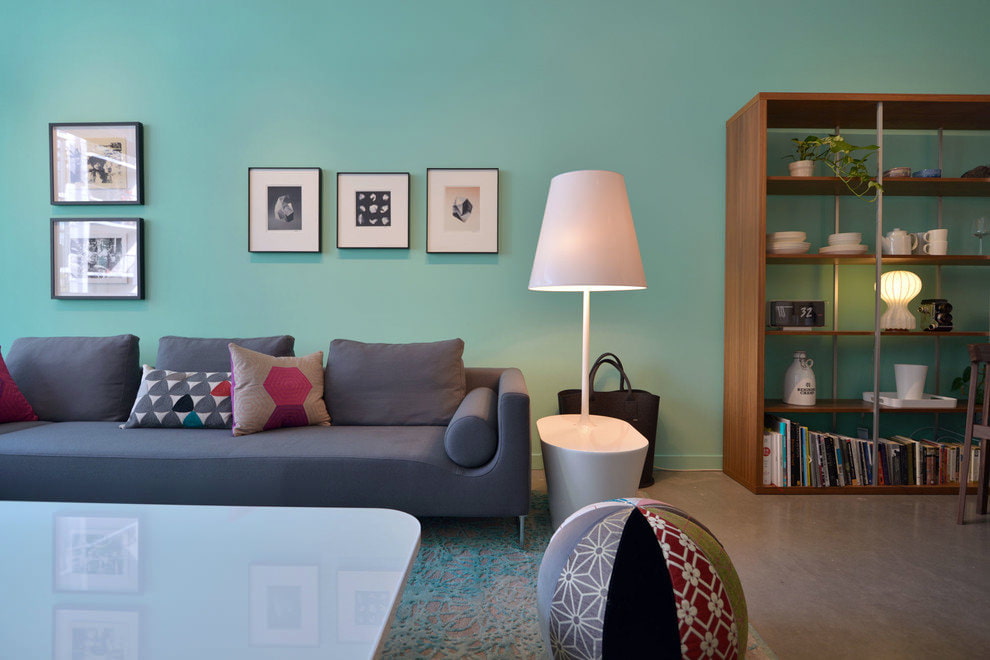 The loft is quite an interesting, modern style that has been highly popular for several years now. Unfinished walls, high ceilings and lots of free space. Deep and rich turquoise will add the missing flavor to the interior.
