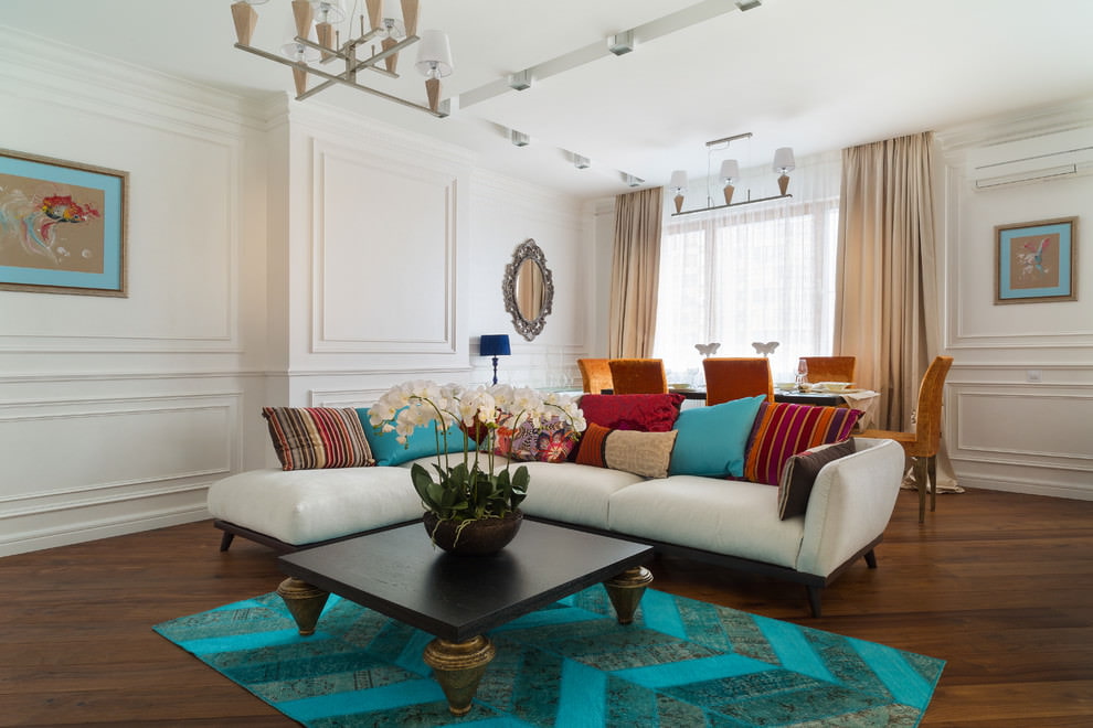 Decorating the living room in turquoise tones will fill the space with the cool sea air, help you relax and recharge with positive energy.