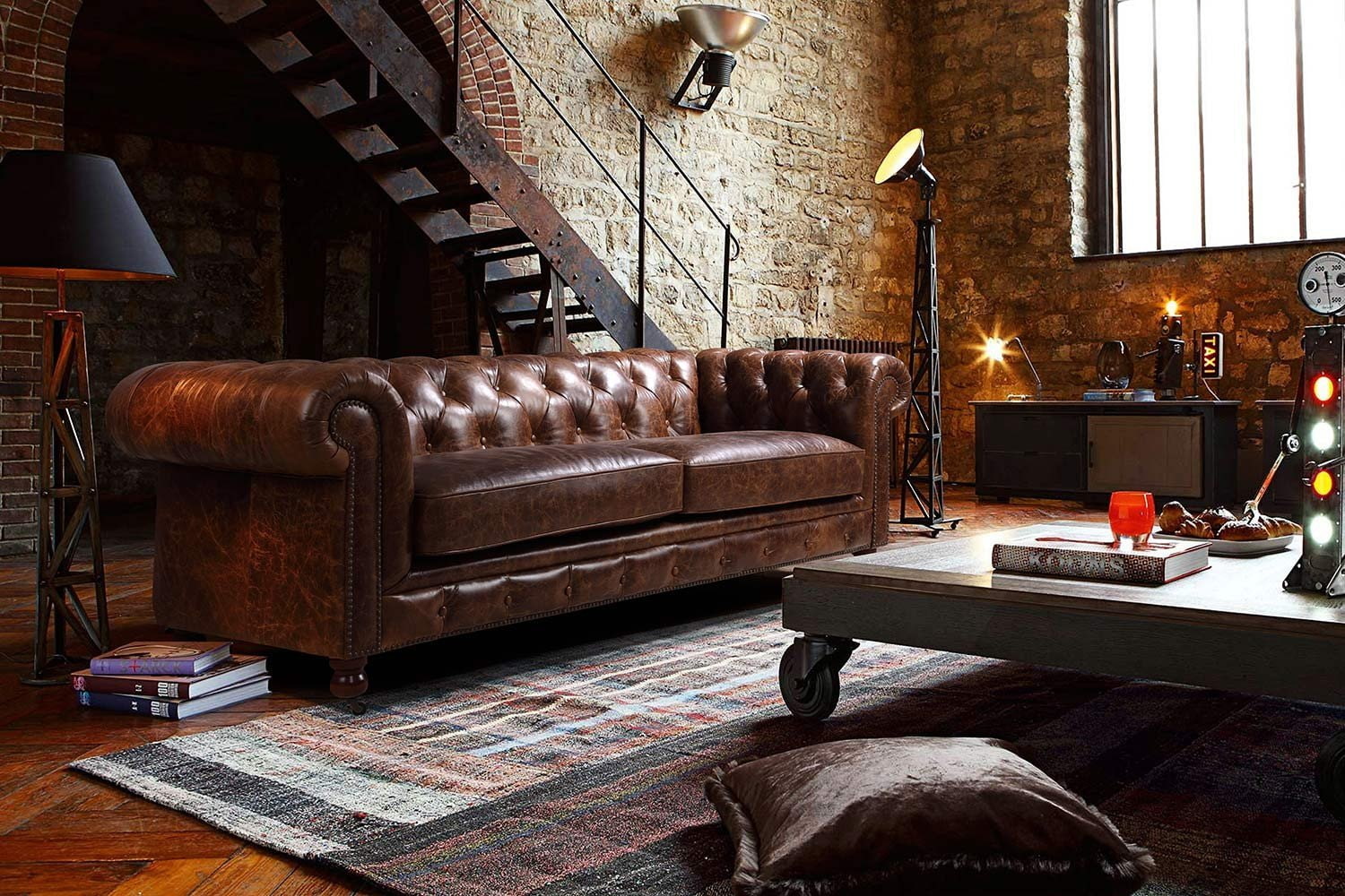 - English... A restrained direction, combining functionality and convenience, is in trend today. Often in the style of old England, offices are decorated, where the very place is for a dark leather Chesterfield. Framed with natural wood and restrained colors, it will look natural.