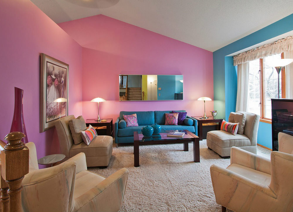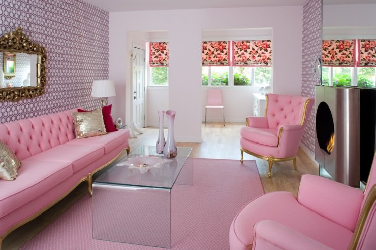 Pink in design can appear “warm” or “cool” for a different impression. This or that appearance of the room is determined depending on the additional color: blue or red, for example, will create completely different sensations.