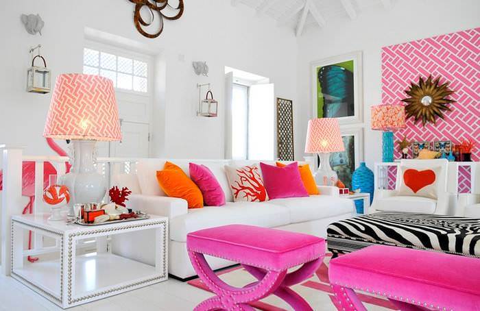 Pink shifts most of the attention to itself, and you should not do the entire design of the room exclusively in one color, except, perhaps, for special artistic solutions.