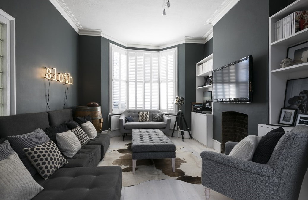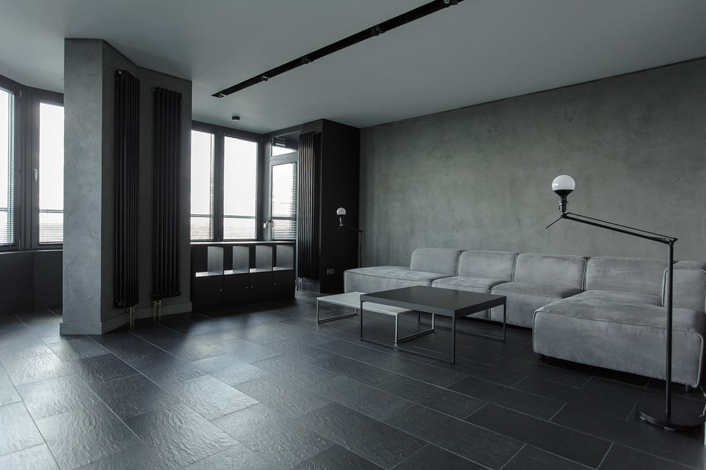 Austere, elegant and sophisticated gray shade allows to emphasize the beauty, original shapes and textures of the living room