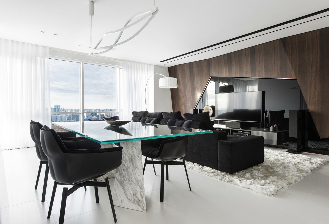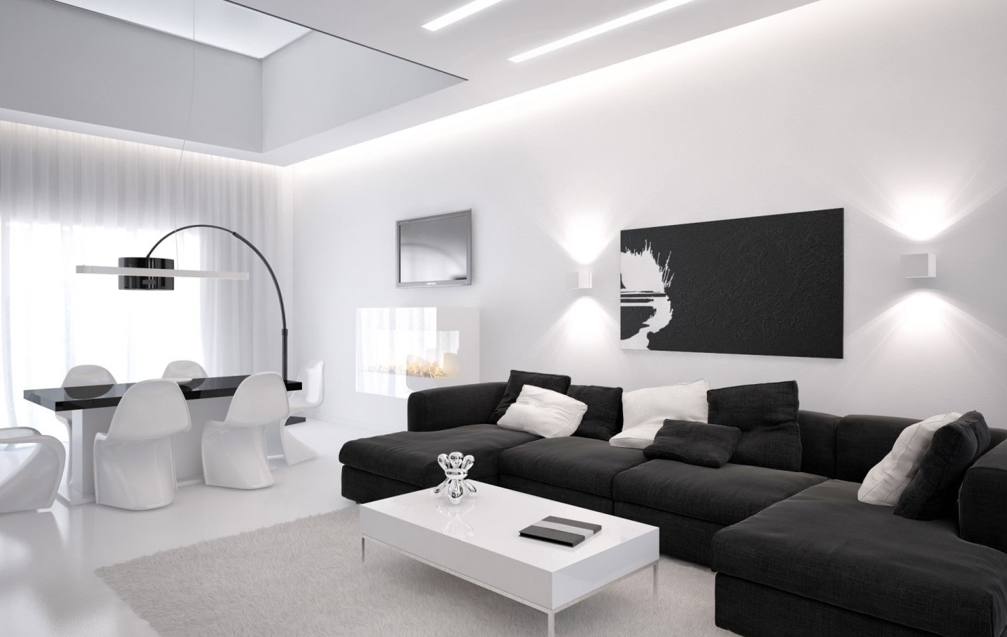 The black and white range allows you to emphasize the unique, creative interior of the living room and endow it with elegance and delicate taste.
