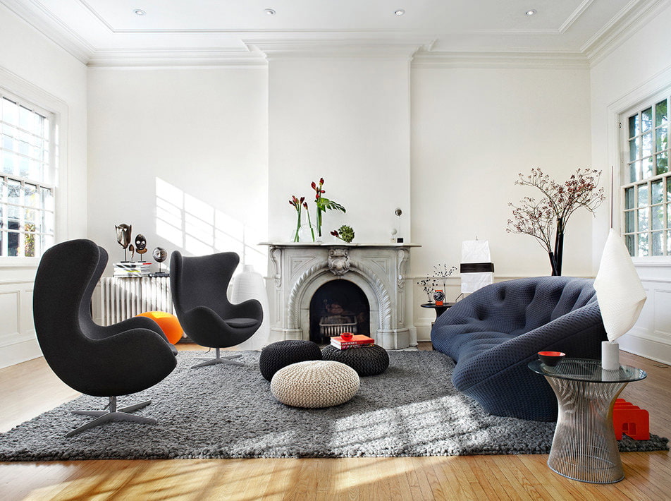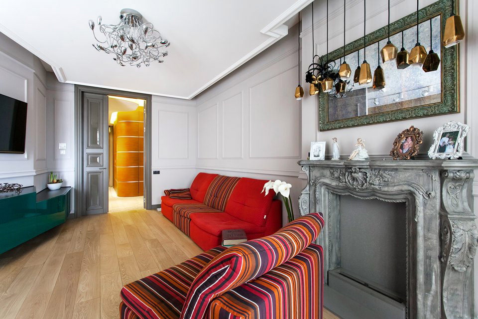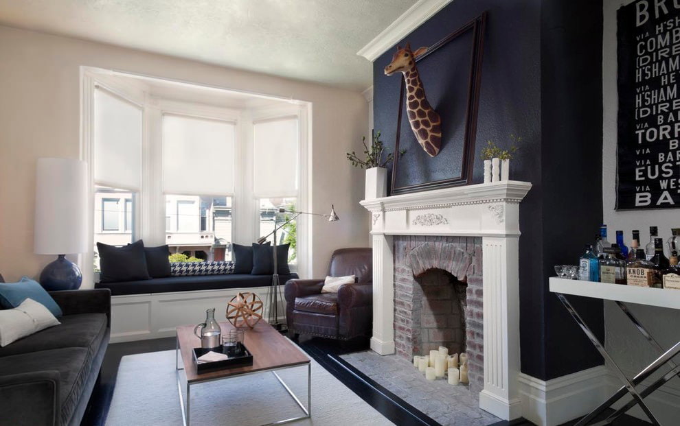 False fireplaces in the living room interior can be divided into three groups: